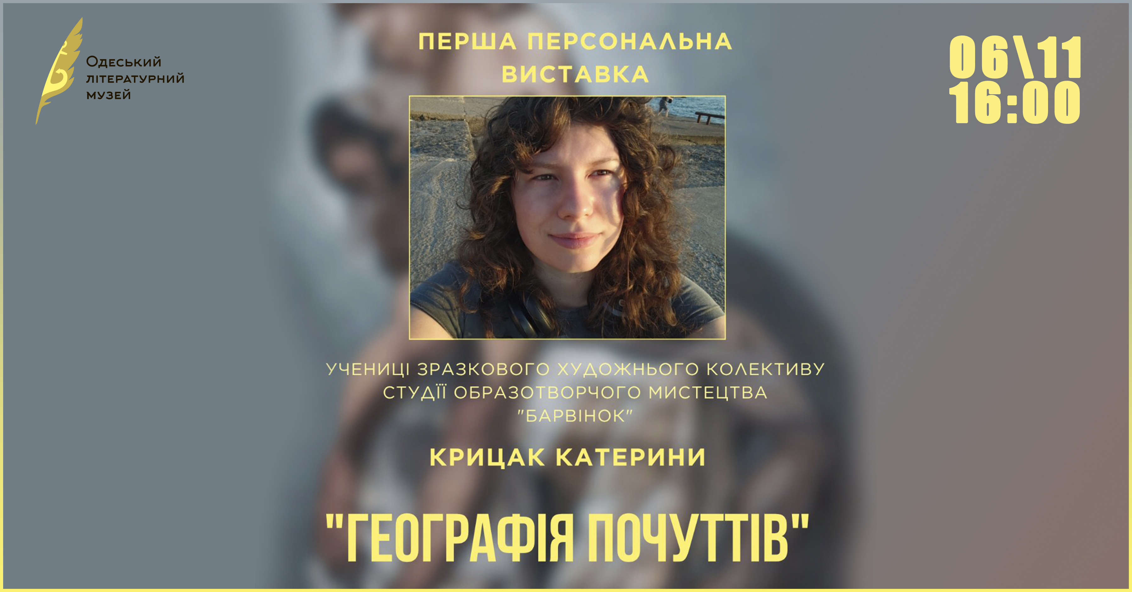 Одеський літературний музей відкриває виставку молодої художниці Катерини Крицак — «Географія почуттів». Ця експозиція — візуальна мандрівка у внутрішній світ авторки, де форма, колір і емоція утворюють власну мапу досвіду та самоідентифікації. Катерина — вихованка Студії образотворчого мистецтва “Барвінок” (керівник — Оксана Дмитрієва) і студентка Одеської державної академії будівництва та архітектури. За 15 років творчого шляху вона сформувала впізнавану авторську мову — чуттєву, метафоричну, багатопланову. Попри молодий вік, художниця вже брала участь у міжнародних виставках у Греції, Італії, Великій Британії,…
