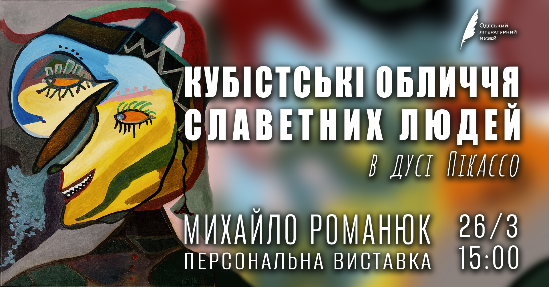 26 березня о 15:00 в галереї Одеського літературного музею відкривається виставка, яка перетворює портрет на поле абстрактної гри з колективною пам’яттю. Знаменитості, яких ми «знаємо», тут перестають бути впізнаваними. Їхні обличчя — це не поверхня, а енергетичний розлам: геометричні площини, різкі лінії, пульсуючі колірні акценти. 22 живописні полотна розбирають образ на фрагменти й збирають його заново — вже без ілюзії реалізму. Це не портрети в класичному сенсі, а абстрактні конструкції слави, влади, трагедії та краси. Серія «Кубістські обличчя знаменитостей…